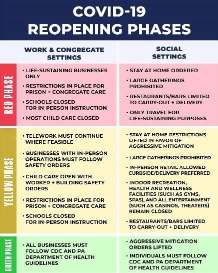 PA Client update: As many of you have heard by now, Governor Wolf has moved several NWPA counties from “red” to “yellow” phase for reopening. Details can be found on the Governor’s Web Page.